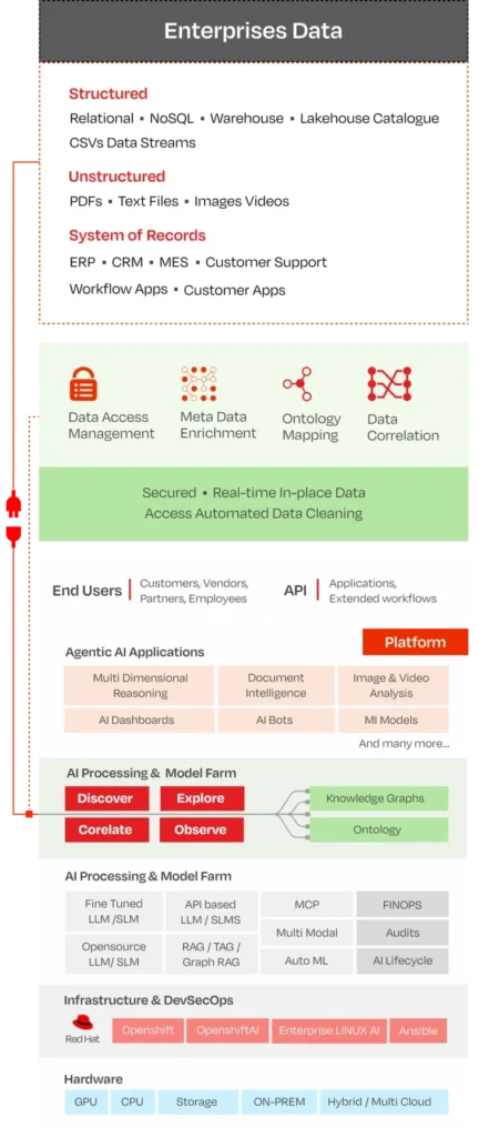Your AI and data never leave your infrastructure. Built on Red Hat OpenShift for enterprise-grade security, with deployment flexibility across on-premises, cloud, or hybrid environments. One-click deployment that meets your IT policies.